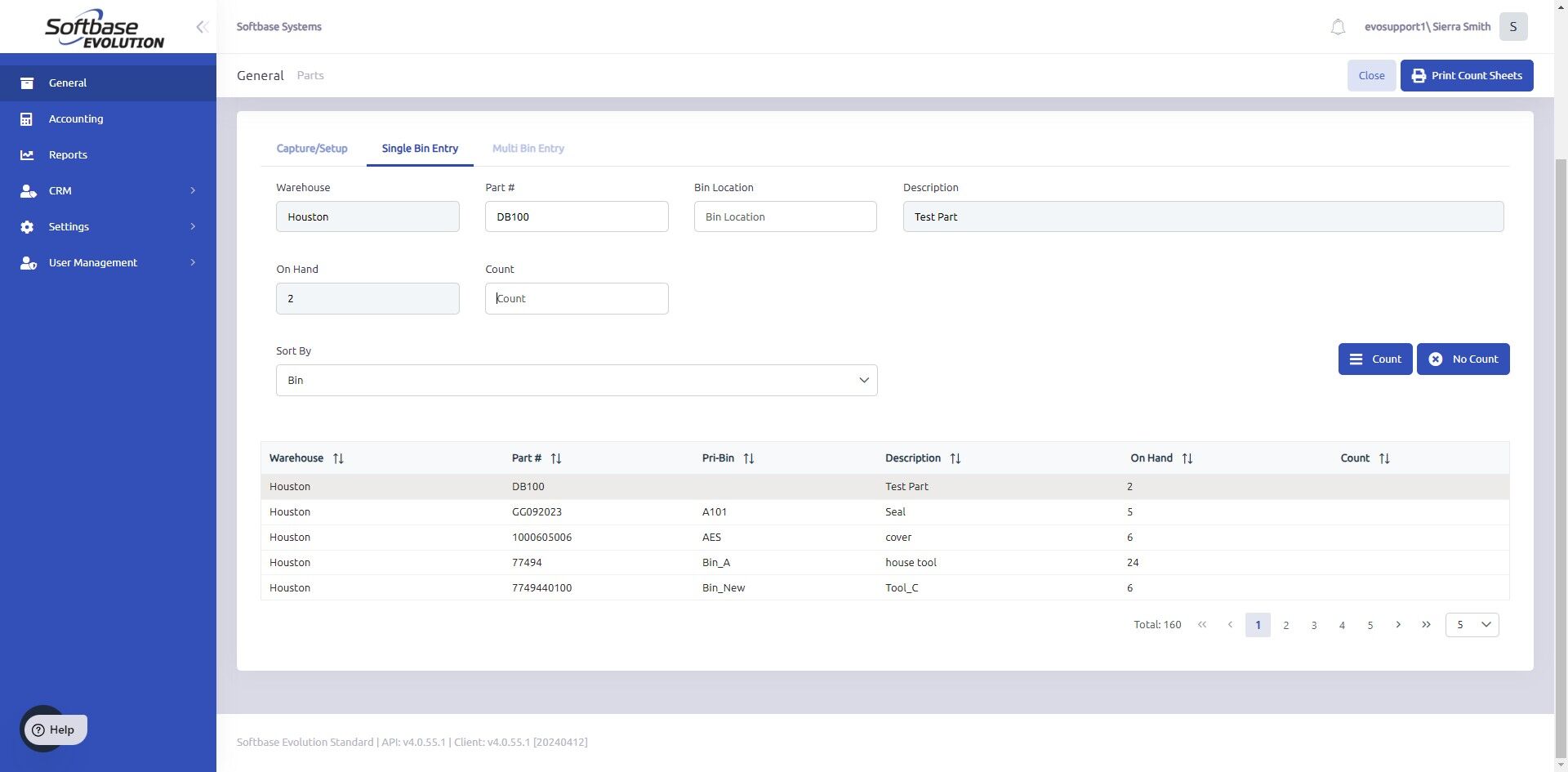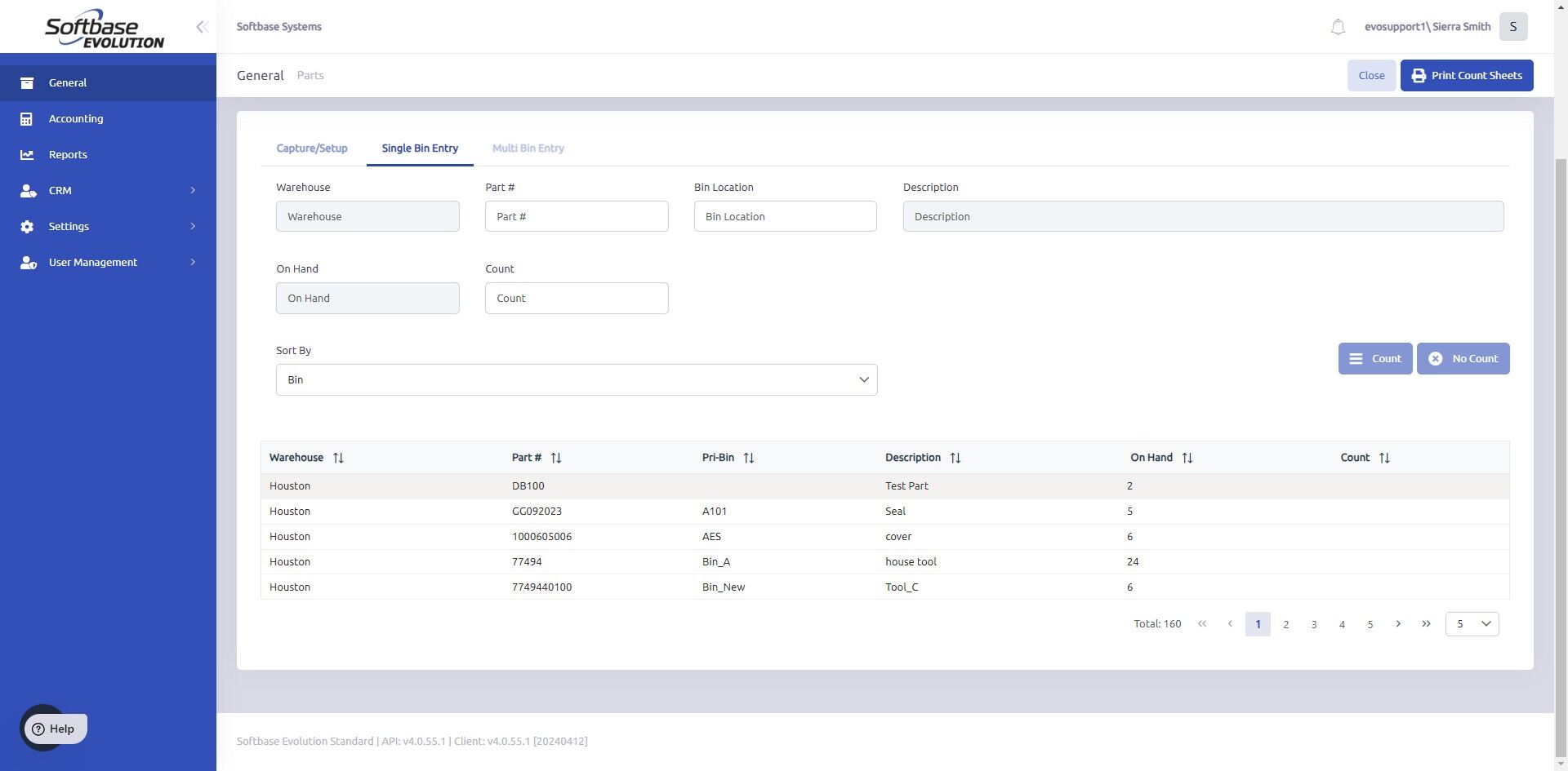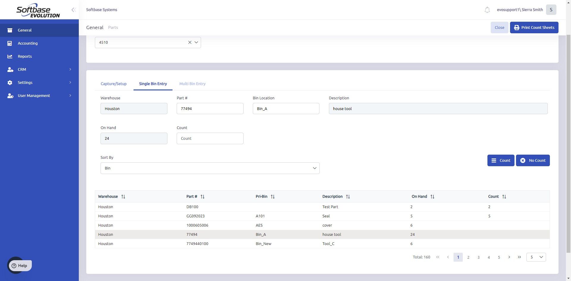 7. Open Single Bin / Multi Bin Entry tabs to enter in the parts counts.
