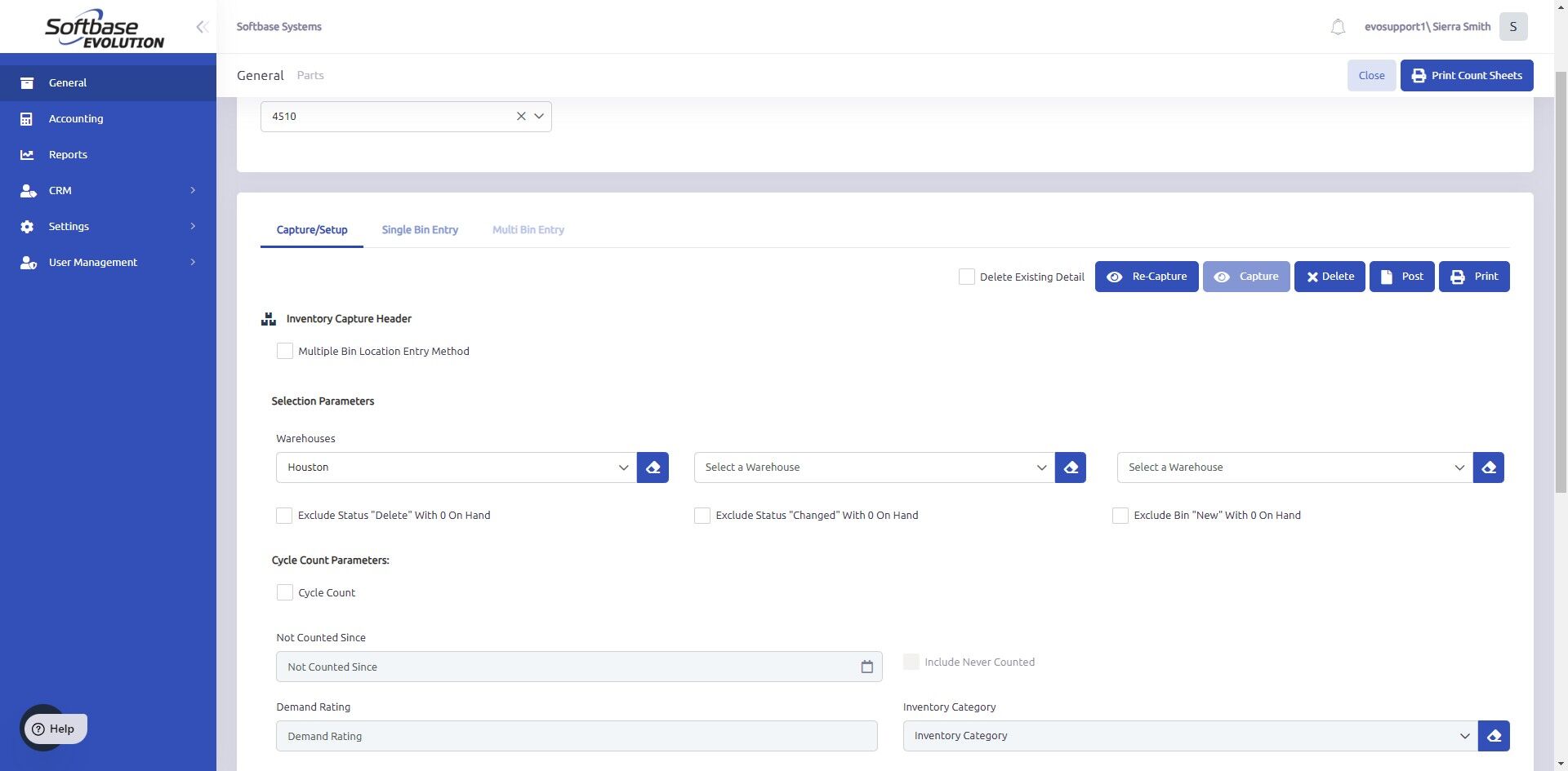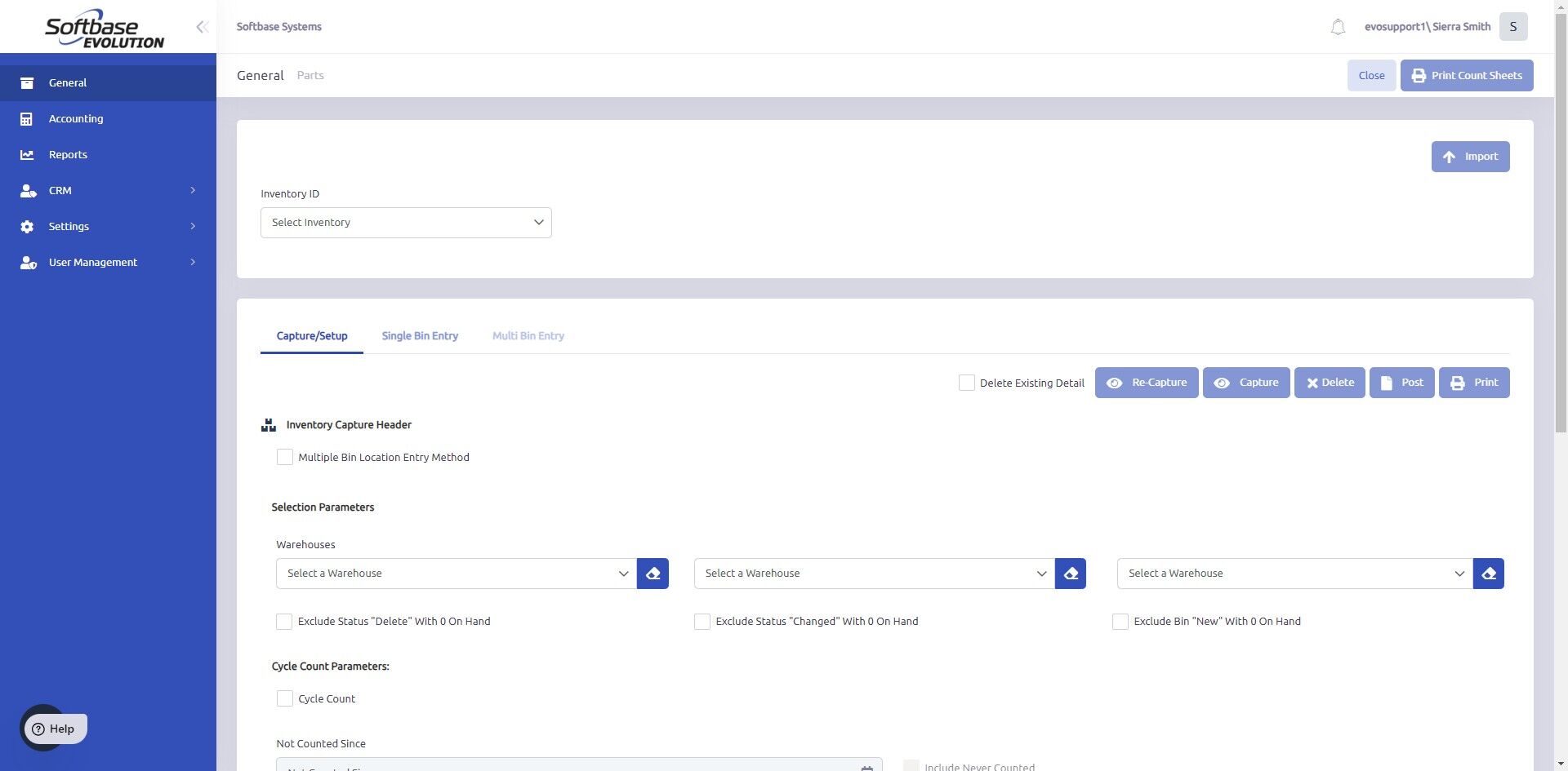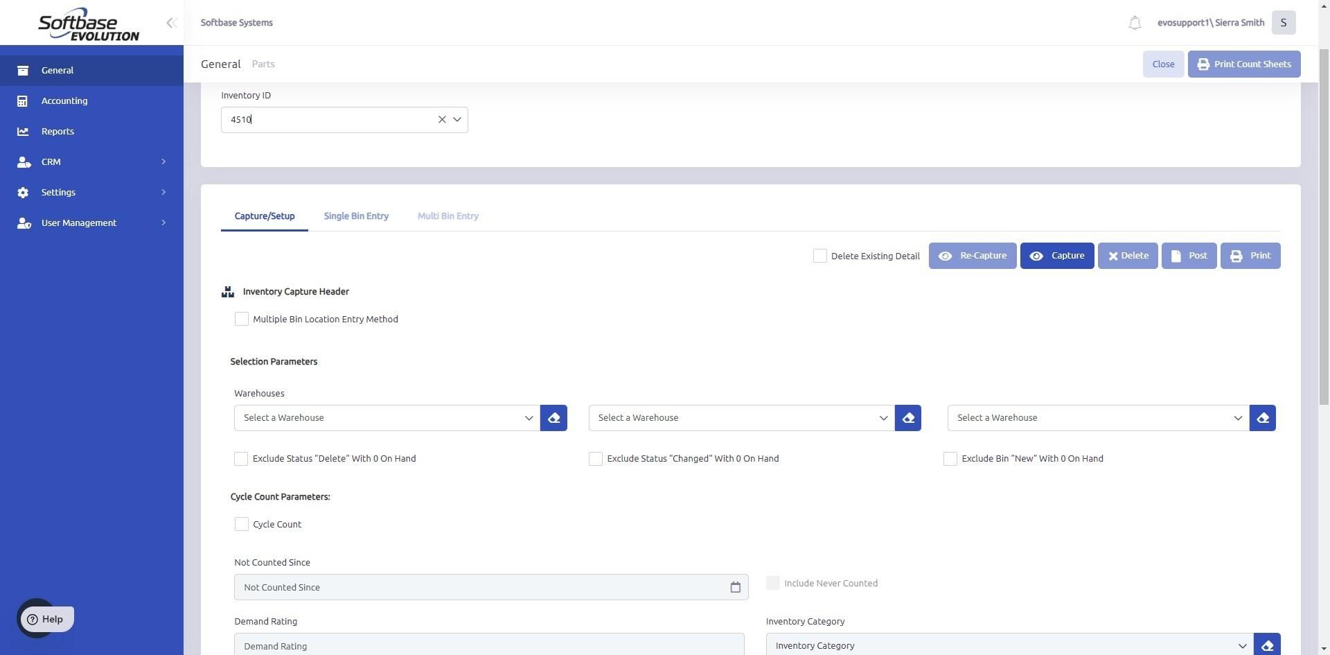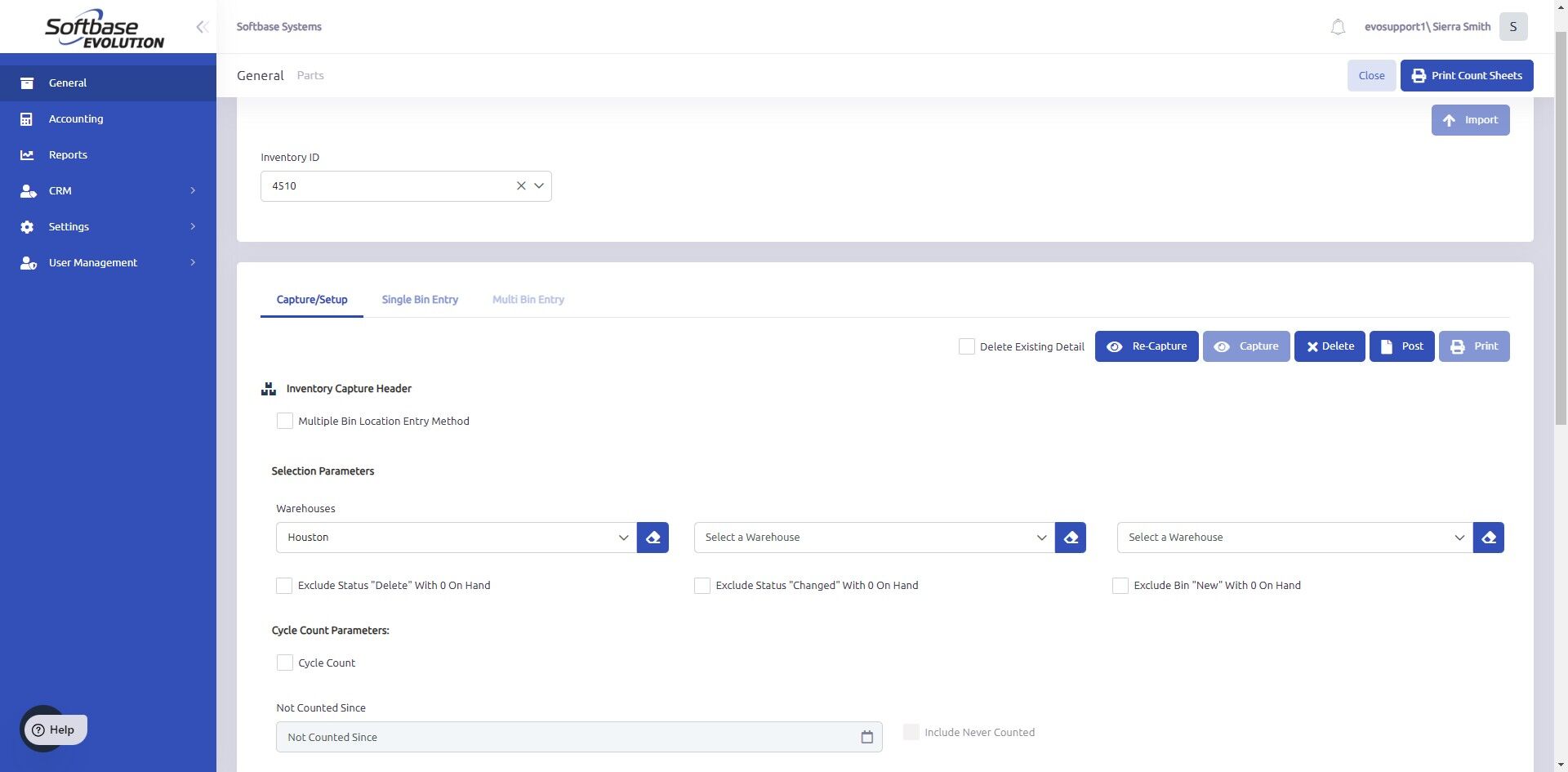 10. Open "Capture/Setup" tab to Post and Print Inventory count.