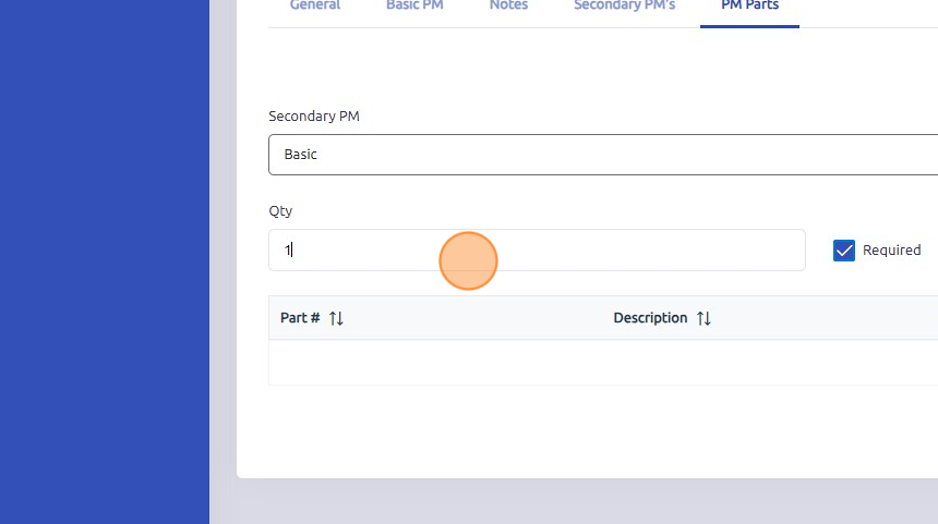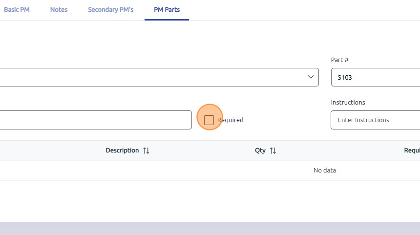 22. Set Required checkbox to true to indicate if this part is always required on this PM.