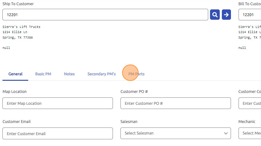 20. Open PM Parts tab. This tab allows you to include a list of all PM Parts typically used when performing this PM. This list is used for reference only and will not affect inventory until manually entered in the Parts tab of the work order.