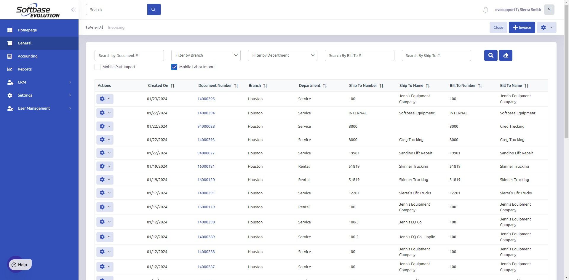 2. Click Search. This will return a list of documents with mobile labor needing to be imported.