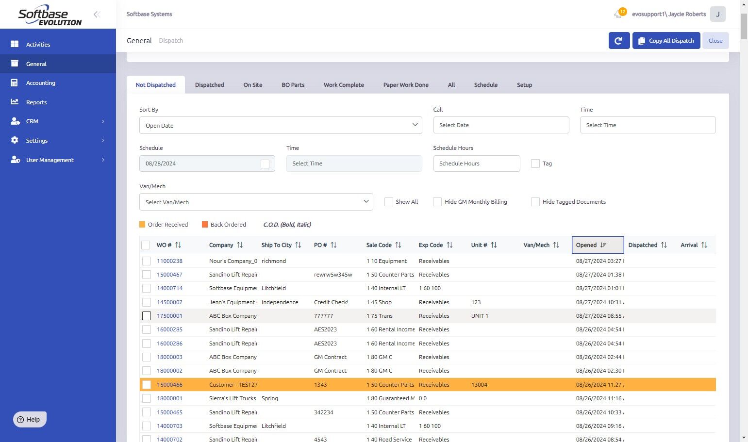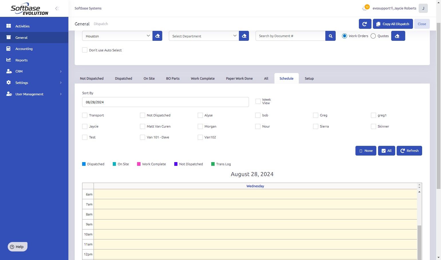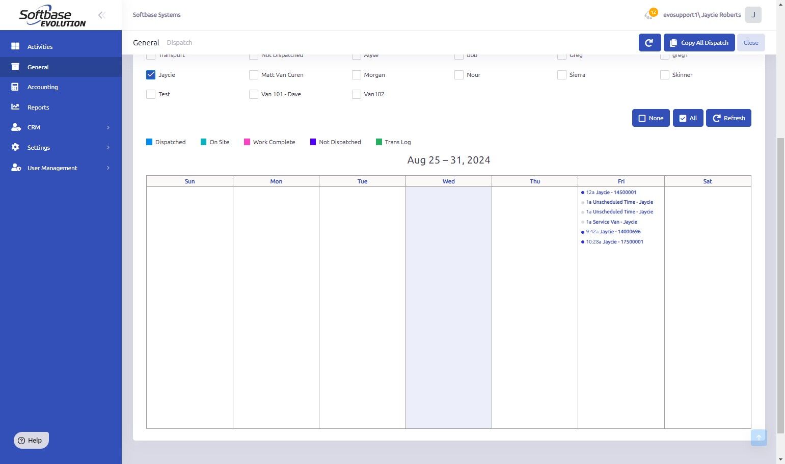 2. To schedule work for specific days in the system, you can utilize either the Not Dispatched, Dispatched, or All tab.