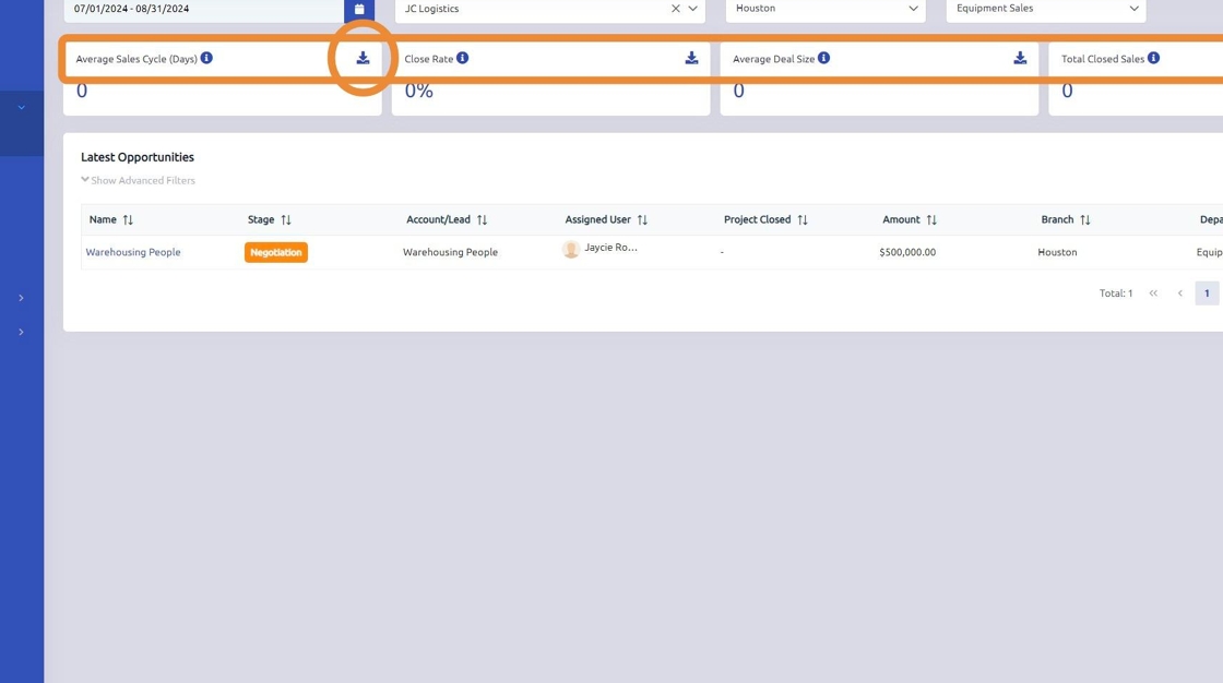 5. Each section of CRM metrics can be exported to an Excel file for further analysis and review. This allows for deeper insights and easier data manipulation outside of the CRM system.