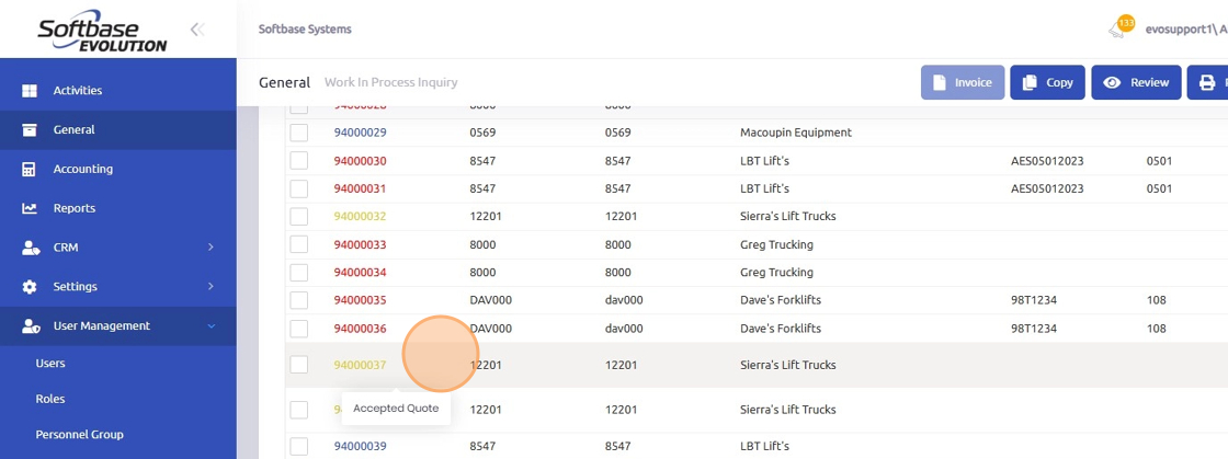 6. You will see the records returned and the Quote numbers are color coded in the list.