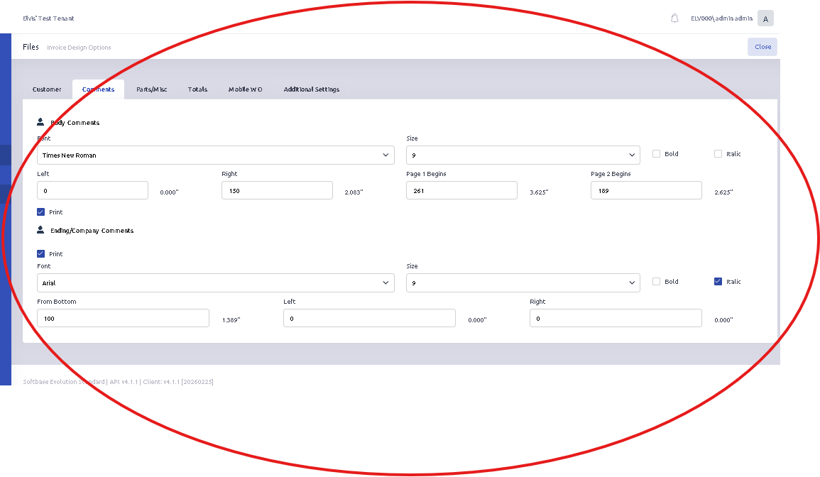 You can also format those additional comments from the Quote tab of the department setup as needed using the Invoice Design Options module. On the comments tab, you can set the parameters and spacing as needed to ensure the comments print as you would like on the quote documents.